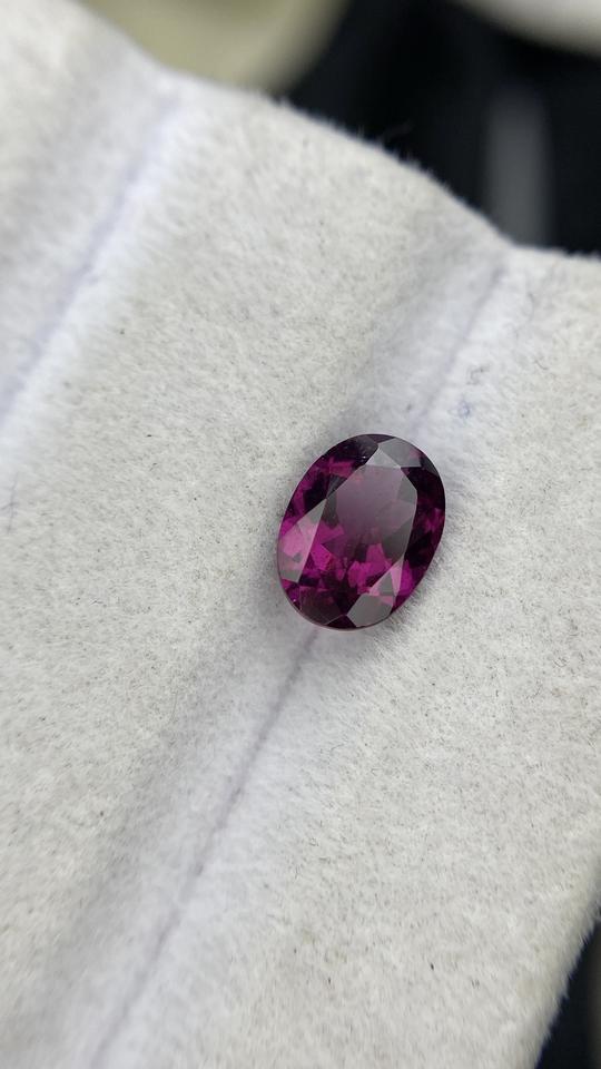 พลอยโกเมน rhodolite ธรรมชาติขนาด8x6มม. ได้รับการรับรองว่าเป็นรูปไข่ด้วยอัญมณีหลวมสียอดเยี่ยม1.41การทำความสะอาดดวงตากะรัต