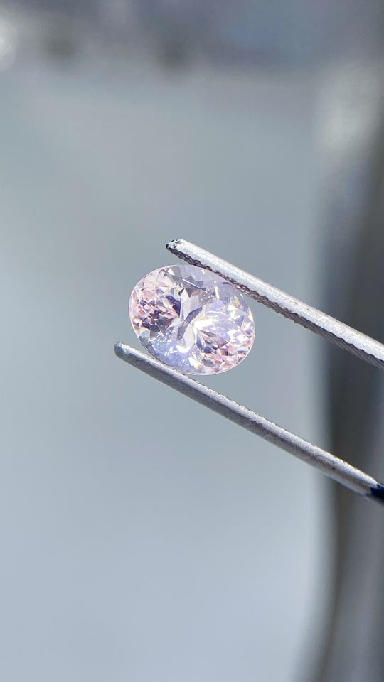 แร่มอร์แกไนท์ธรรมชาติขนาด9x7มม. ได้รับการรับรองตัดเป็นรูปวงรีสียอดเยี่ยมและความมันวาววาวจากธรรมชาติ Beryl 1.83กะรัต Loupe สะอาด