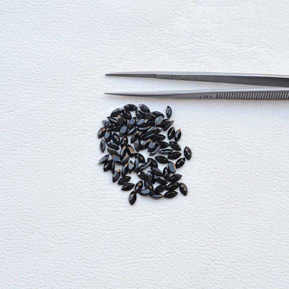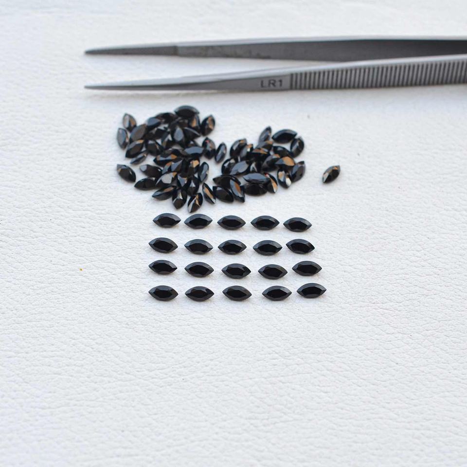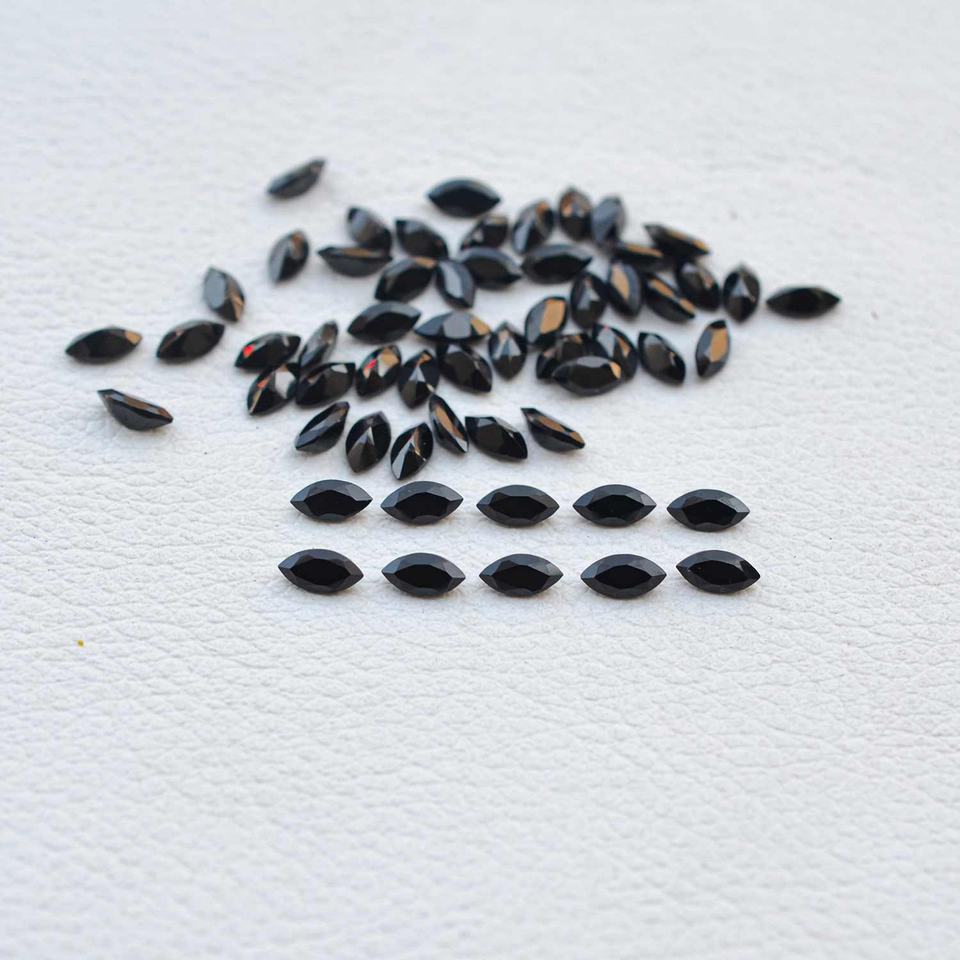 หินอัญมณีทรงเหลี่ยมเพชรพลอยประดับเพชรโอนิกซ์สีดำธรรมชาติขนาด2.5มม. X 5มม. ได้รับการรับรองเกรด AAA