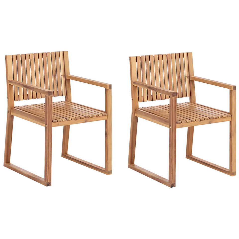 ชุดเก้าอี้รับประทานอาหารไม้อะคาเซีย2ชิ้นเฟอร์นิเจอร์สไตล์โมเดิร์นทนทานสำหรับสวนห้องนั่งเล่นโรงแรมหรืออพาร์ทเมนต์