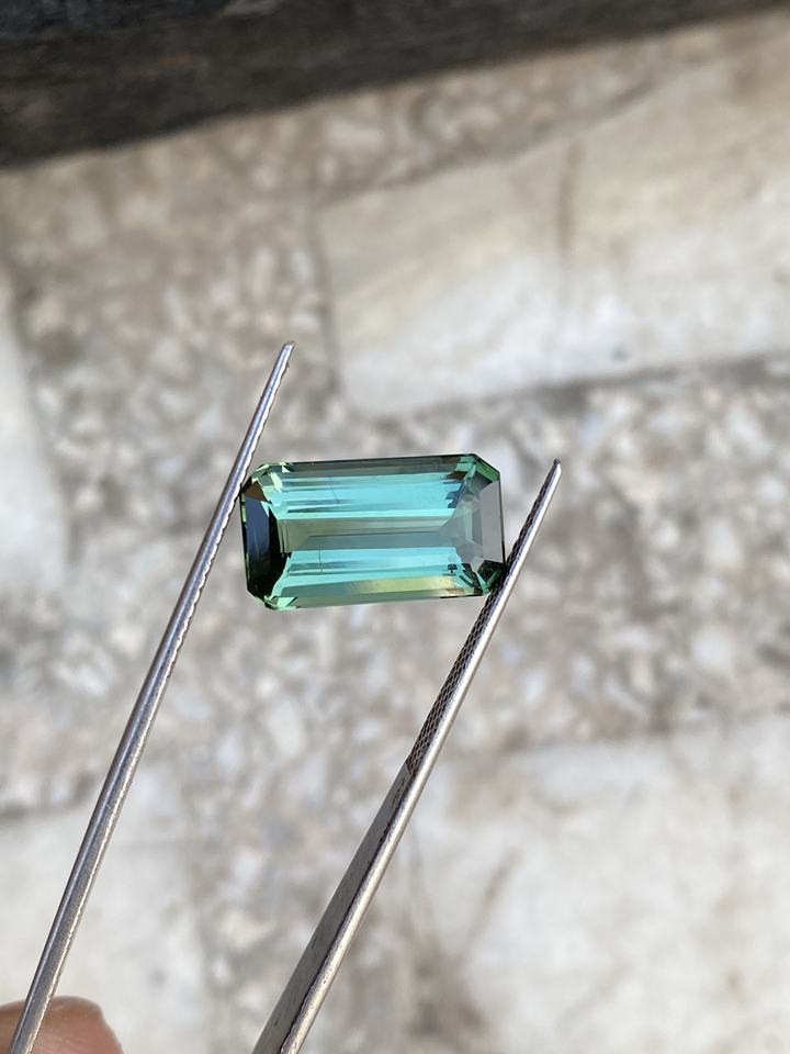 หินทัวร์มาลีนยาวแปดเหลี่ยมมรกตสีธรรมชาติพลอยหลวม6.21กะรัตได้รับการรับรอง