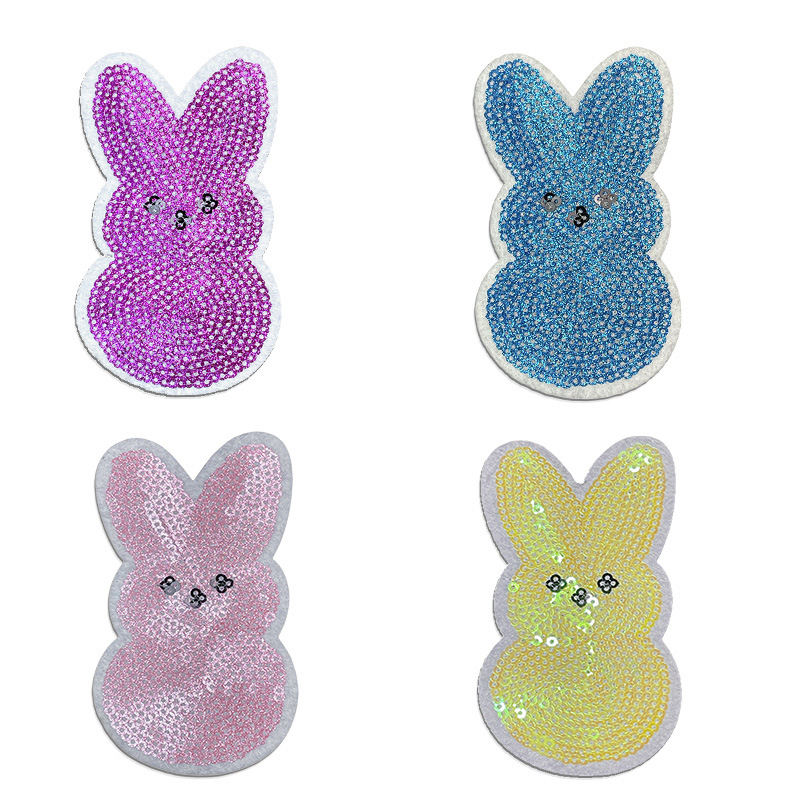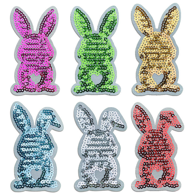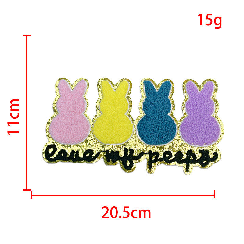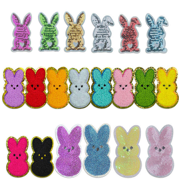 แผ่นปะติดลายการ์ตูนหลากสีสันแบบมีกลิตเตอร์ ปักด้วยไหมเชนิลล์ รูปกระต่ายอีสเตอร์ รับทำตามสั่ง รีดติดได้