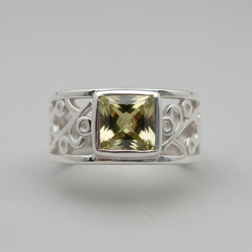 แหวนแต่งงานชุบโรเดียมทองคำขาวประดับพลอยเพทายสีเงินแท้ได้รับการรับรองรูปทรงเรขาคณิต