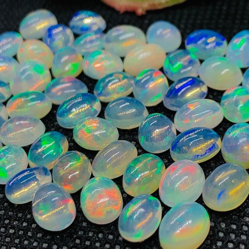 พลอยโอปอลเอธิโอเปียแท้รับรองคุณภาพ รูปทรงคาโบชองวงรี สีสันสดใส โอปอลรูปทรงวงรีสำหรับเครื่องประดับหรูหรา สั่งซื้อจำนวนมาก