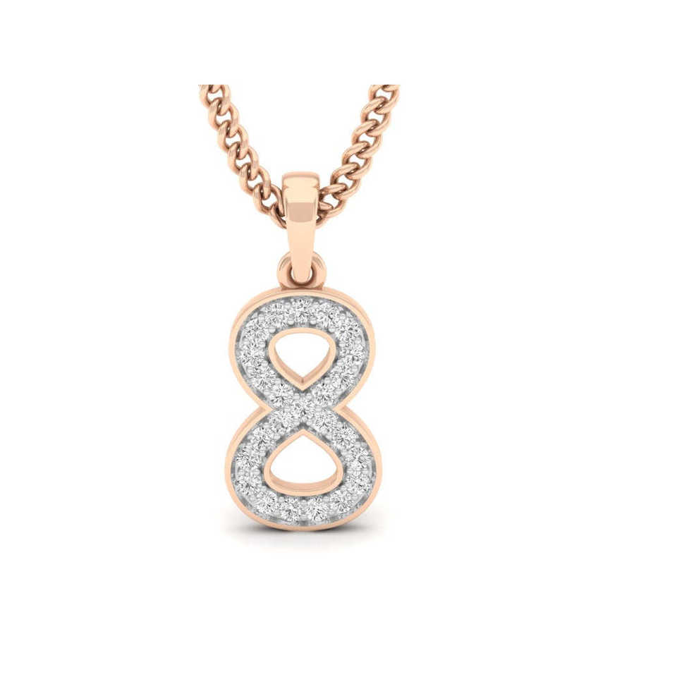 จี้ทองคำแท้หมายเลข 8 ประดับเพชรแท้ น้ำหนักรวม 0.12 กะรัต ความบริสุทธิ์ 14K/18K จี้เพชรและชาร์มสุดหรู