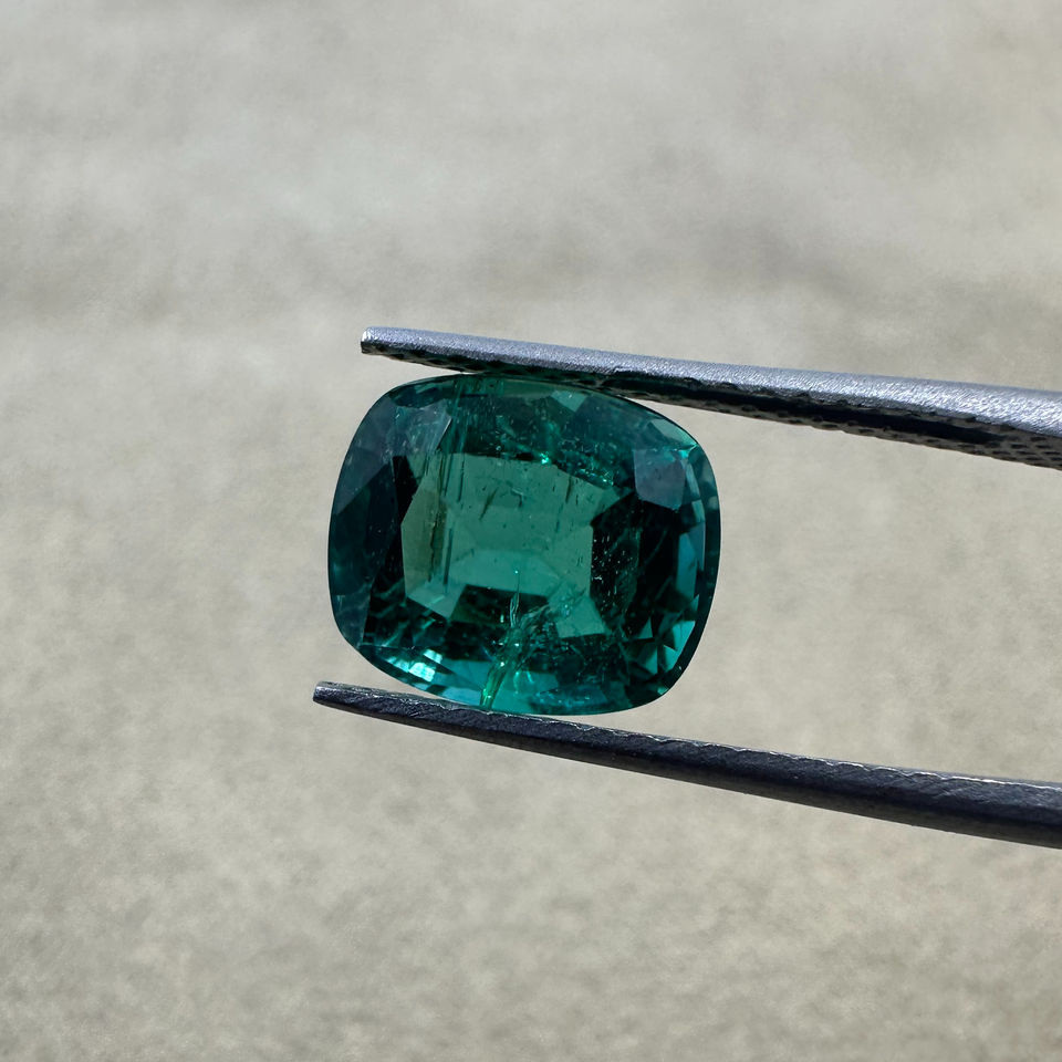 พลอยมรกตแซมเบียทรงคุชชั่น 3 กะรัต คุณภาพสูง สวยงาม เป็นธรรมชาติ สำหรับทำเครื่องประดับ จากพลอยหลวม