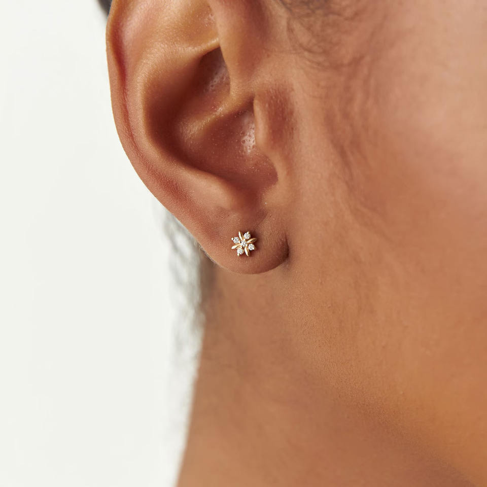 ชื่อสินค้า:ต่างหูเพชรรูปดอกไม้ ประดับเพชร ทำจากทองแท้ 18K