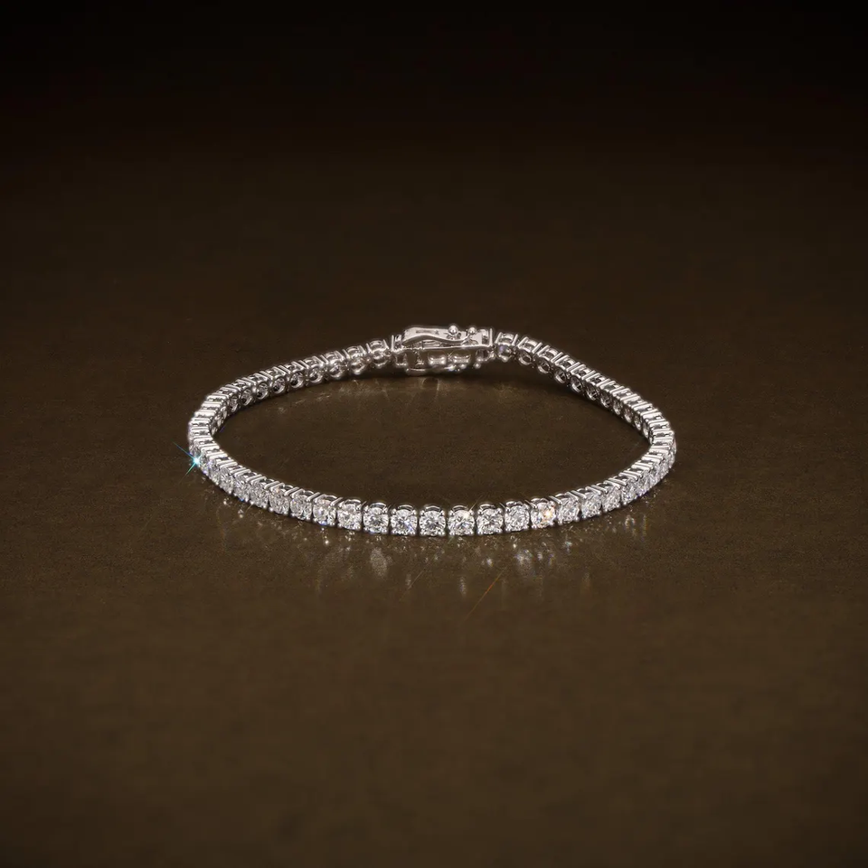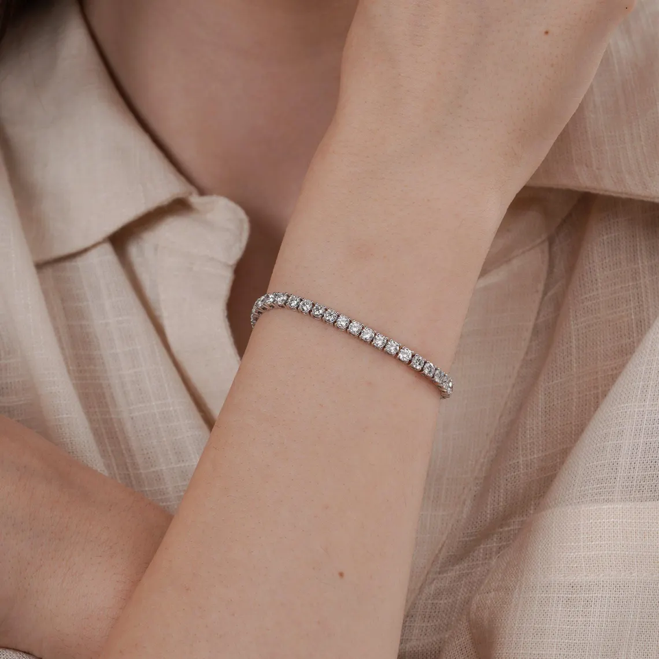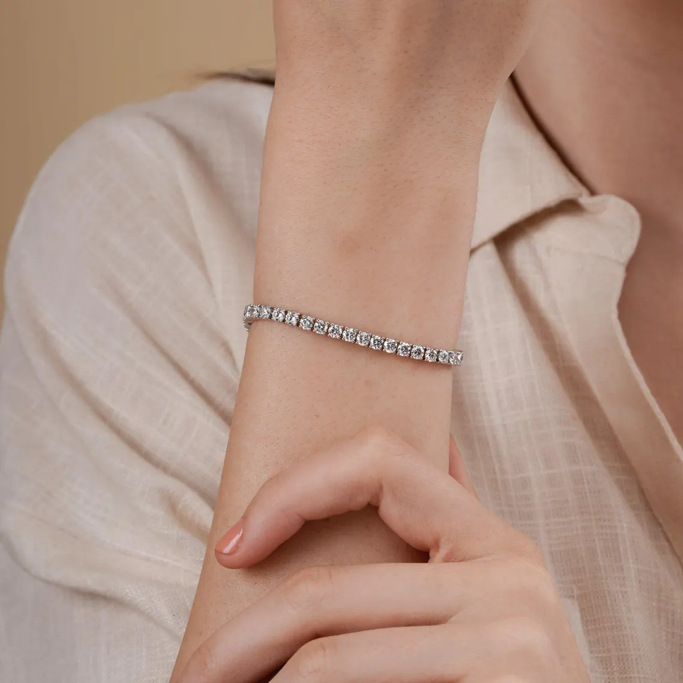 กำไลข้อมือเพชรเทนนิสทรงกลมเจียระไนแบบบริลเลียนท์ ได้รับการรับรองจากห้องปฏิบัติการ ความใสระดับ VVS2 ดีไซน์คลาสสิก สง่างาม หรูหรา