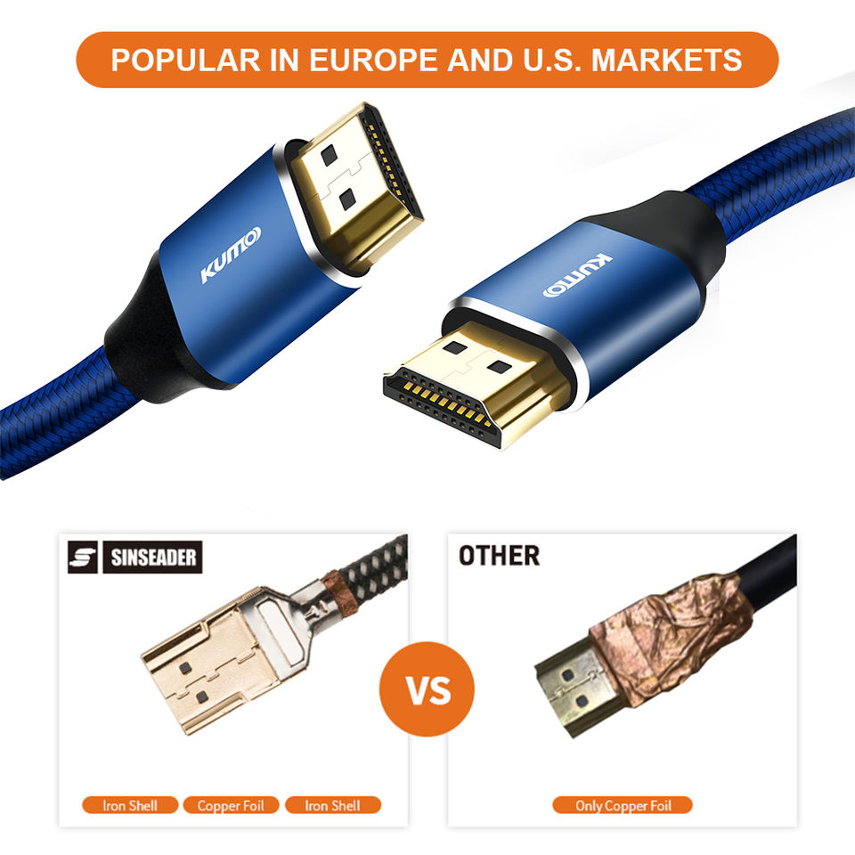 สาย HDMI รุ่นล่าสุด รองรับความเร็วสูง 48Gbps รองรับ Dynamic HDR ผ่านการทดสอบ TDR ความละเอียด 8K 60Hz 4K 120Hz