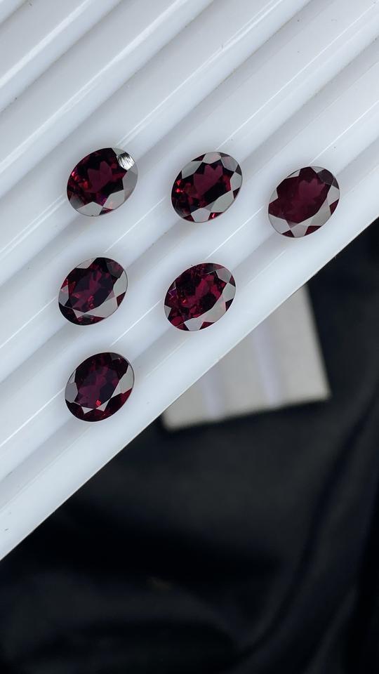พลอยโรโดไลต์การ์เนตธรรมชาติทรงรีขนาด 9x7 มม. คุณภาพสีเยี่ยม น้ำหนัก 14.10 กะรัต แบบหลวม จำนวนมาก ได้รับการรับรอง