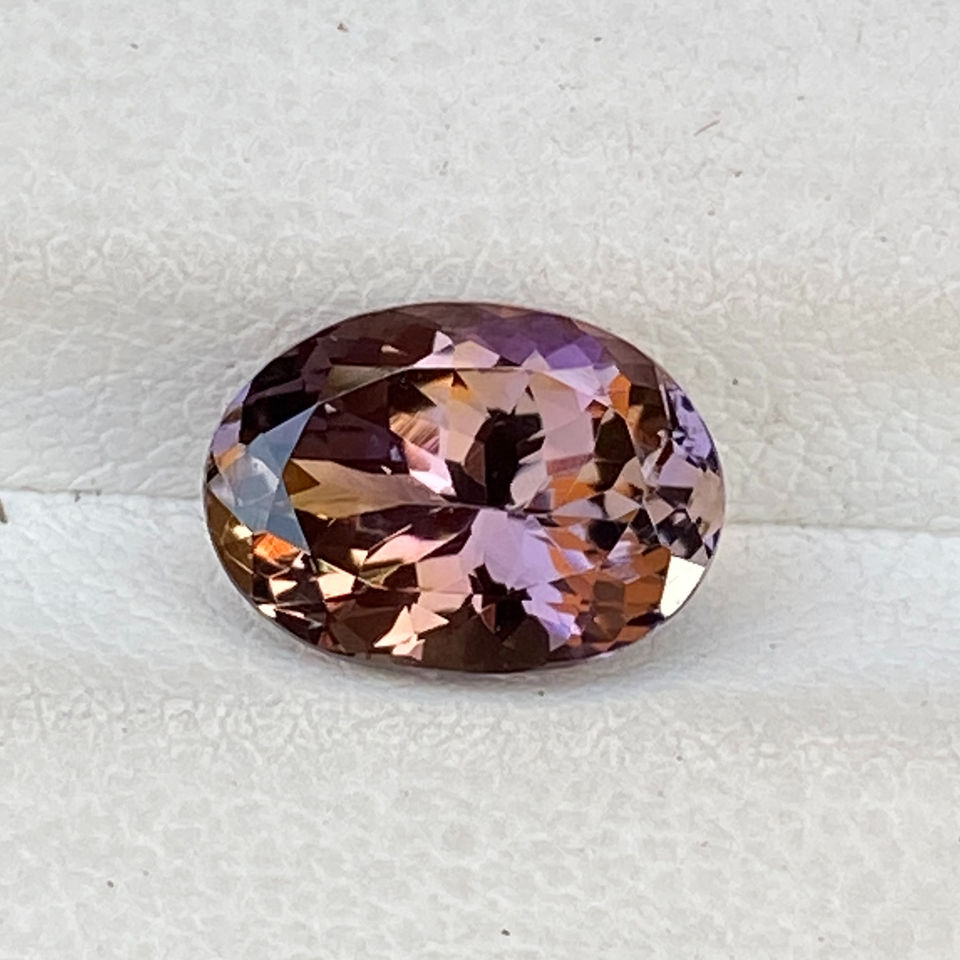 อัญมณีทรงวงรีทรงรีจาก tanzanite ธรรมชาติที่ผ่านการรับรองแล้วมีหลายสีที่ยอดเยี่ยมและแว่นตา zoisite ธรรมชาติที่แวววาว2.44สะอาดกะรัต