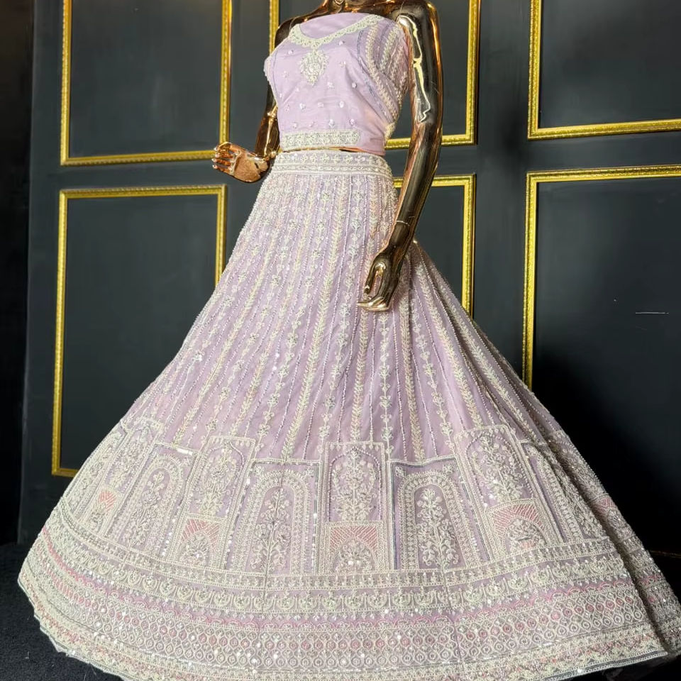 ชุดเลเฮนกาโชลีสำหรับเจ้าสาวที่ได้รับการรับรอง พร้อมงานปักประณีตเต็มตัว ทรงบานใหญ่ และดูหรูหราเบาสบาย เหมาะสำหรับงานปาร์ตี้และงานพิธีต่างๆ