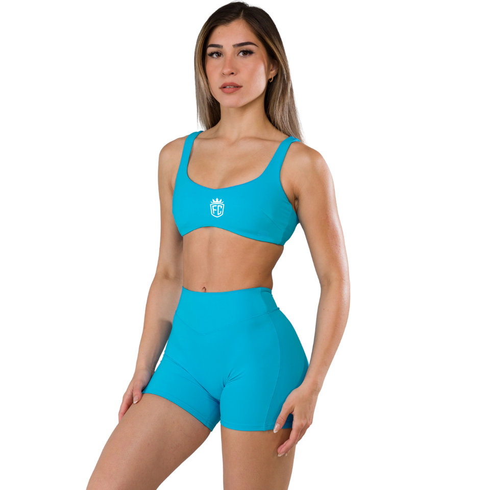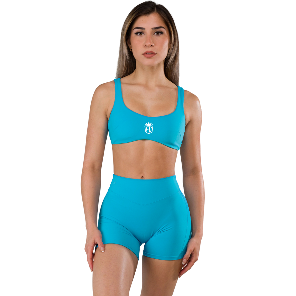 Cerulean Blue Women Seamless Open Back Sports Bra High Support Stretch Yoga Gym Fitness Workout Activewear Top