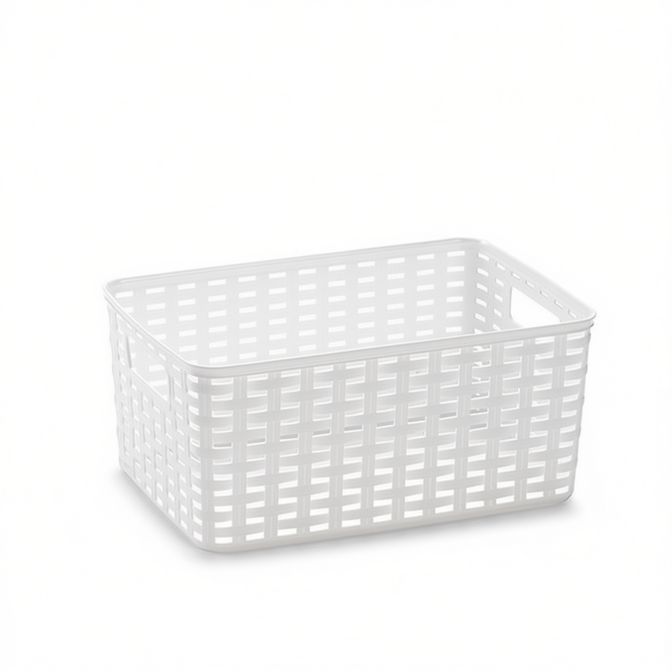 ตะกร้าเก็บของพลาสติกสีขาว Cesta Rattan N3 10 ลิตร ขนาด 33x22 ซม.