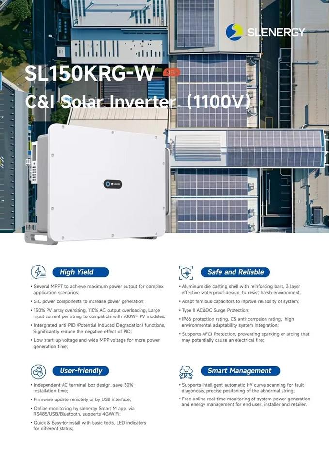 อินเวอร์เตอร์เชื่อมต่อระบบไฟฟ้าสามเฟส Cesun SL150KRG-W ขนาด 150 กิโลวัตต์ ประสิทธิภาพ 98.5% ระดับการป้องกัน IP66 รับประกัน 5/10 ปี ดีไซน์กะทัดรัด