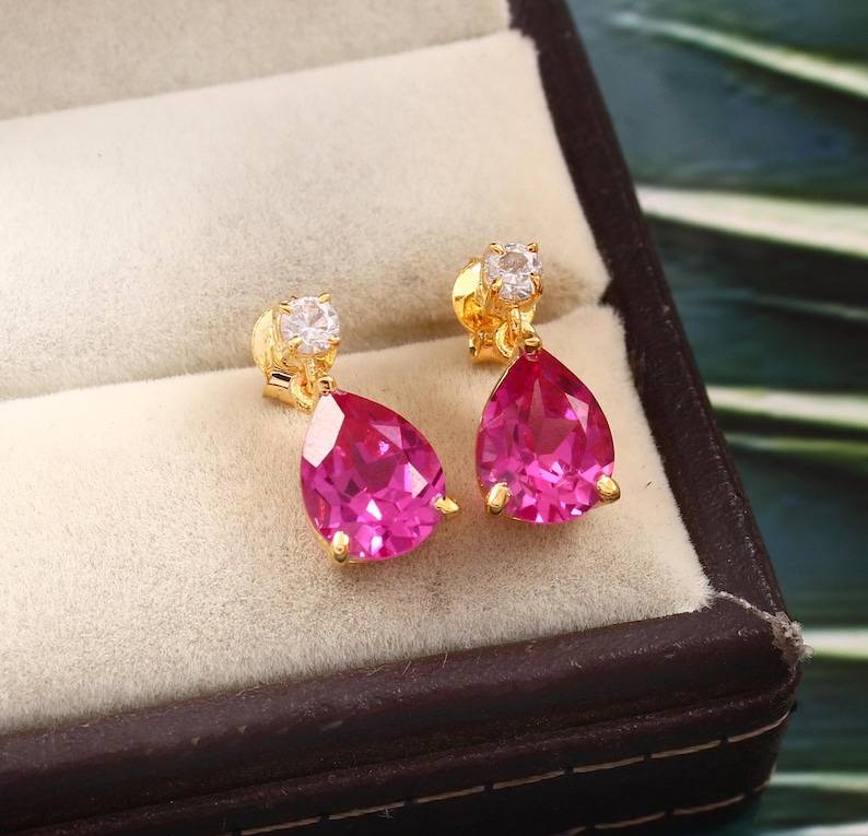 ชื่อสินค้า:ต่างหูไพลินสีชมพู, ต่างหูผู้หญิงแบบมีเสน่ห์