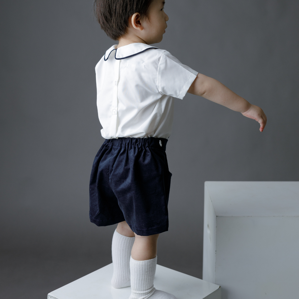 Chaiko House Baby Boys 2-Piece Striped/Pleated Pattern Khate/Corduroy Fabric Skin-Friendly Anti-Shrink Breathable Anti-Wrinkle