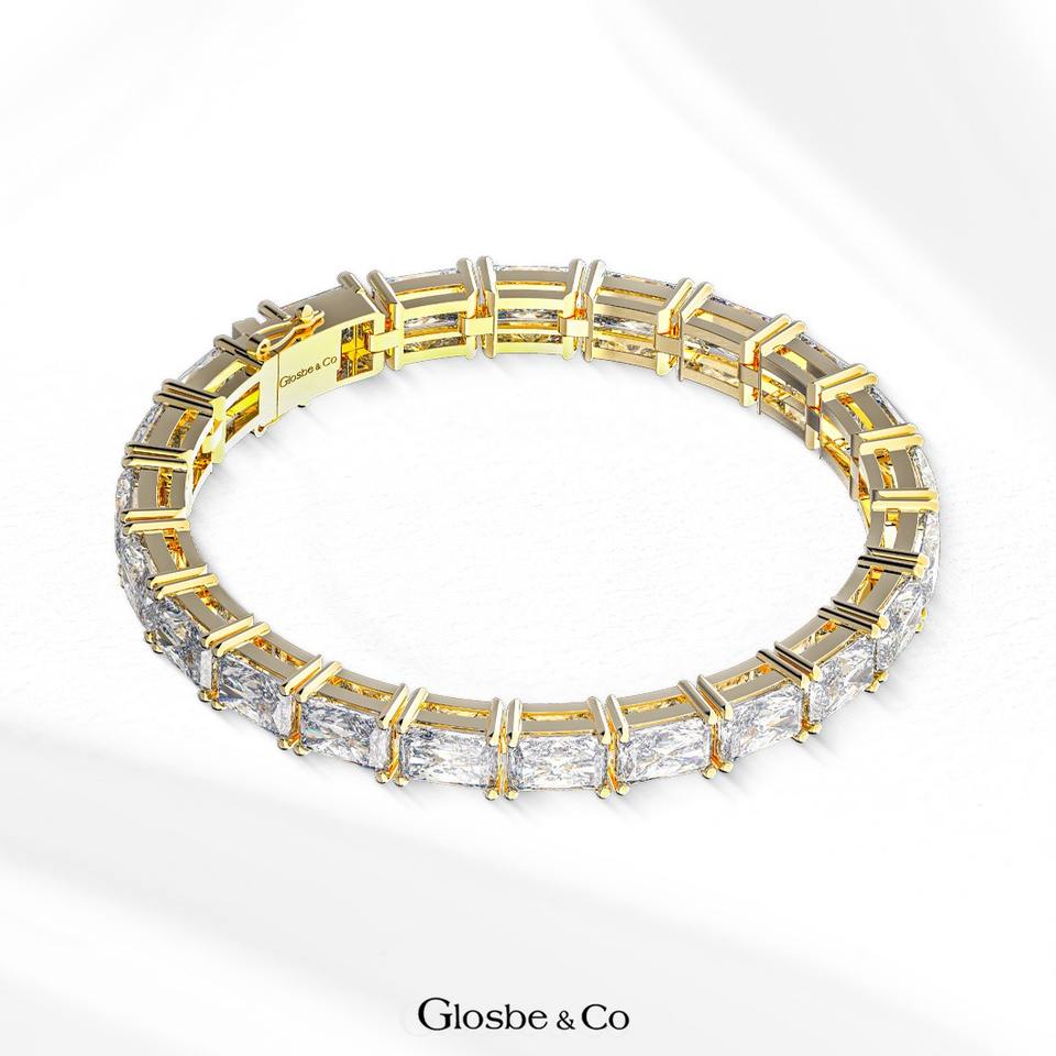 สร้อยข้อมือแบบโซ่และแบบเชื่อมต่อจากเวียดนาม - สร้อยข้อมือเทนนิส ดีไซน์ Emerald VIP (พลอยขนาด 4x6 มม.) สร้อยข้อมือเงินประดับเพชรคิวบิกเซอร์โคเนีย Glosbe & Co