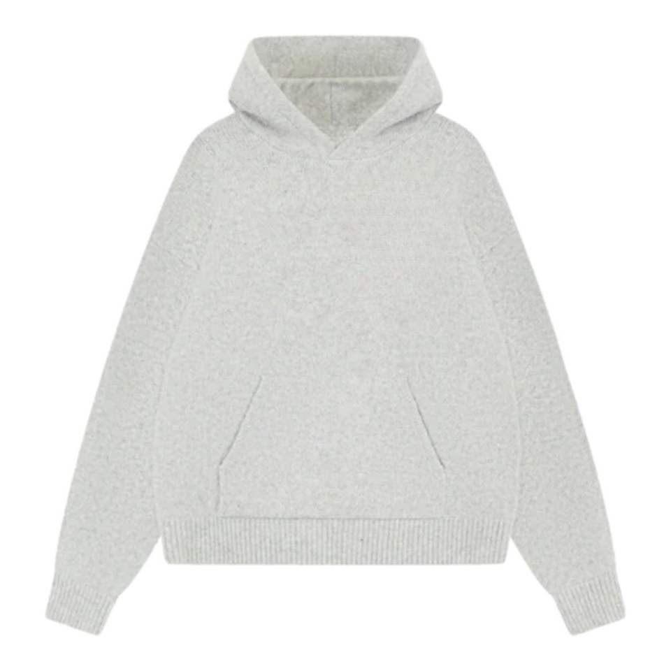 เสื้อฮู้ดถักลายปักแบบเชนสติทช์สำหรับผู้ชาย เสื้อฮู้ดสุดเท่ห์ สวมใส่สบาย พร้อมลายปักสีเทา เสื้อฮู้ดถักคุณภาพพรีเมียม