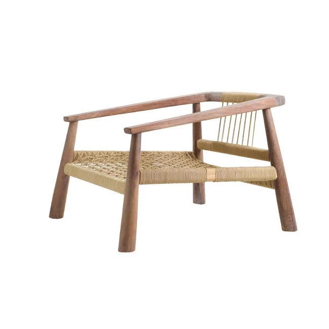 เก้าอี้พร้อมเบาะรองนั่งและเชือกถักตกแต่งด้วยไม้ธรรมชาติสำหรับใช้ภายในอาคาร