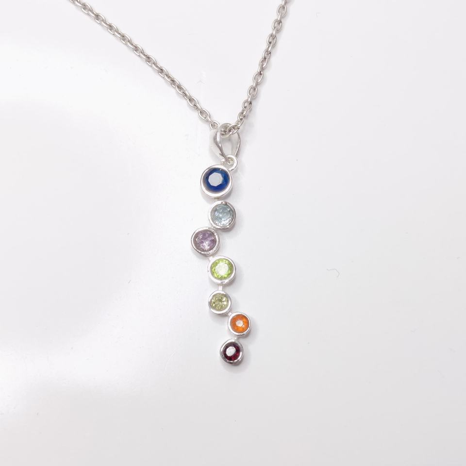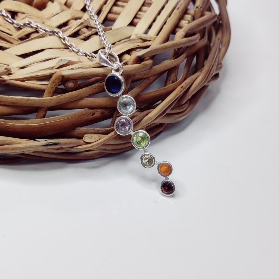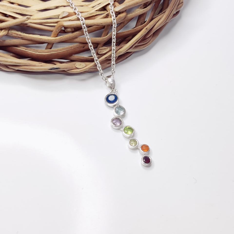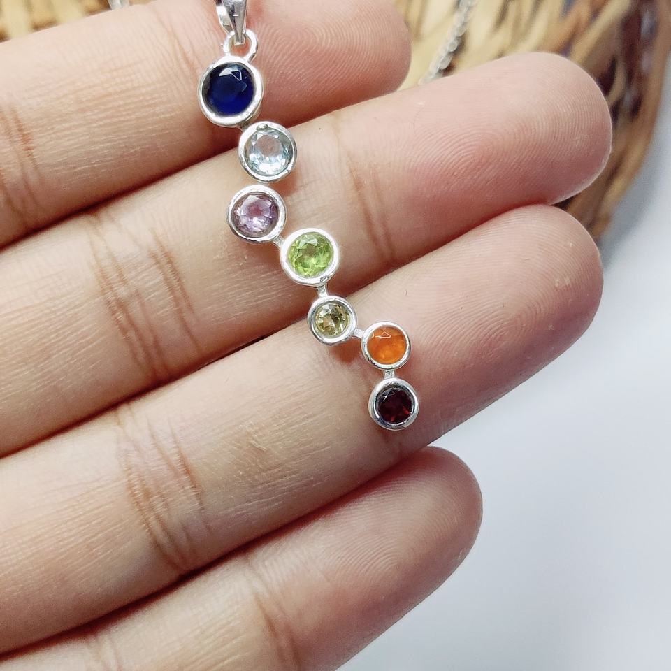 จักระ7ไพลิน925เงินสเตอร์ลิงจี้กลมทันสมัยทางจิตวิญญาณ