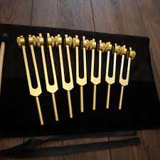 ตะเกียบเสียงจักระหมายเลข 9 และโซลเฟจิโอหมายเลข 9 ตะเกียบเสียงทองคำแบบถ่วงน้ำหนัก 18 ตัว สำหรับการบำบัดและอุปกรณ์ในห้องปฏิบัติการ