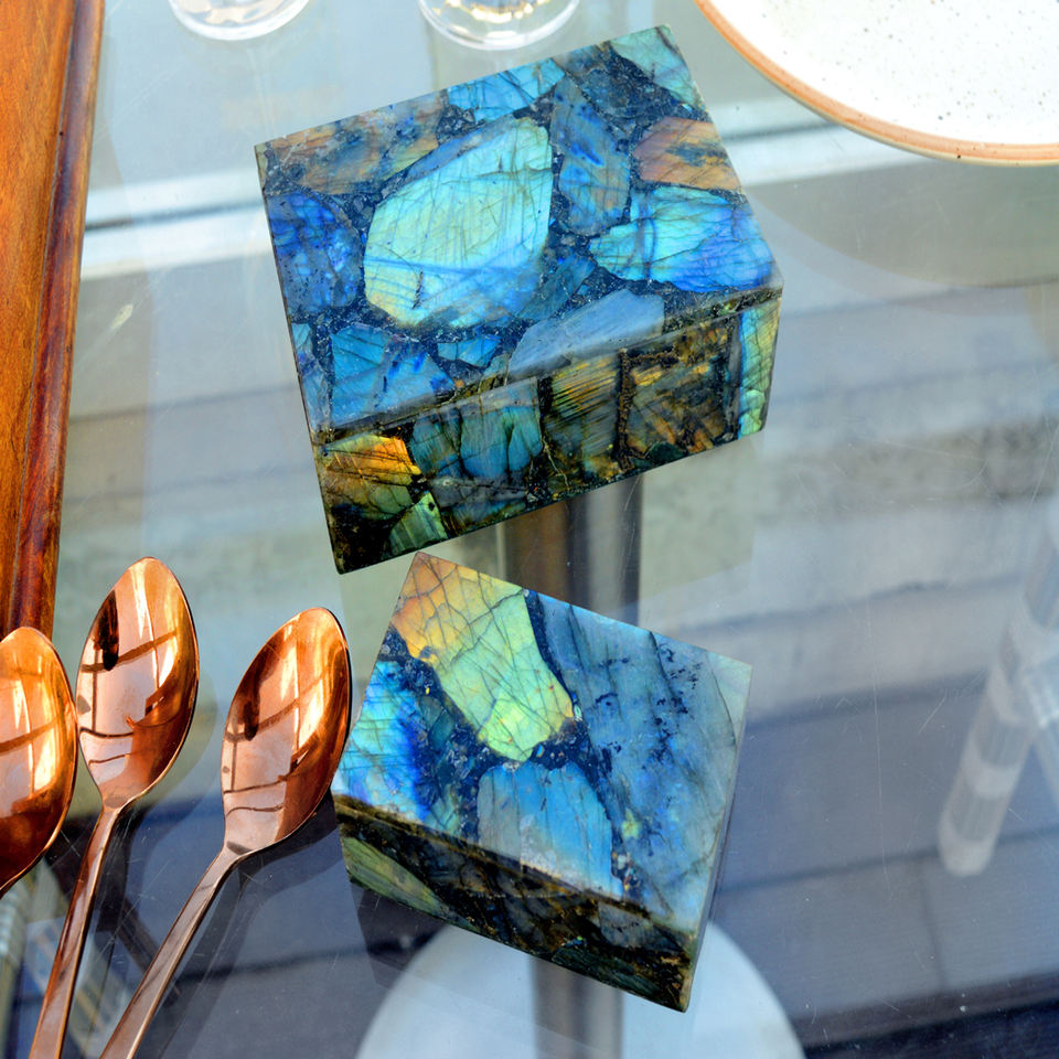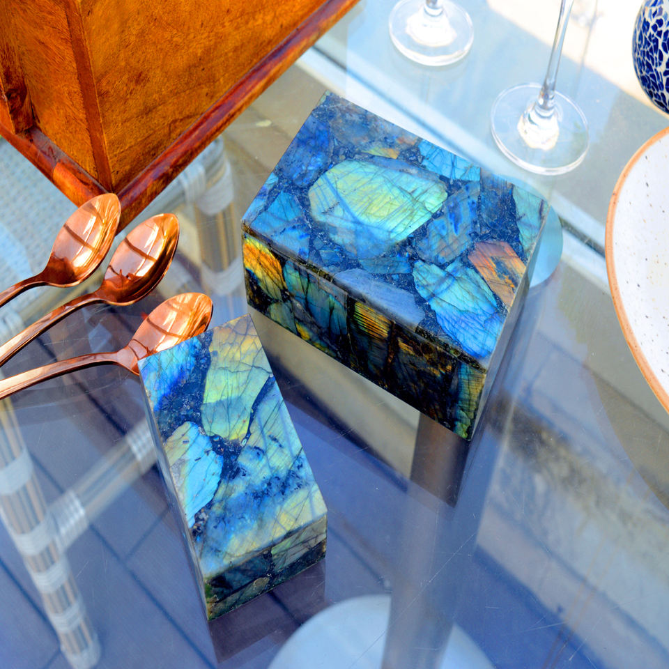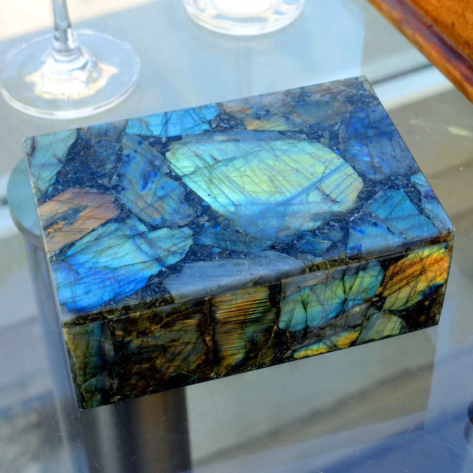 กล่องใส่เครื่องประดับอะคริลิคหินคริสตัลจักระ | กล่องเก็บอัญมณีธรรมชาติ | กล่องโชว์หินลาบราโดไรต์เพื่อการบำบัด