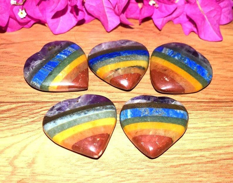 จักระฮาร์โมนี่7จักระคริสตัลหัวใจบวมสำหรับการรักษาอารมณ์พลังงานไหลการเชื่อมต่อทางจิตวิญญาณ