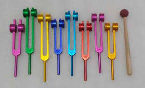 ชุดส้อมจูนจักระเพื่อการบำบัด 7 จักระ และ 1 จักระแห่งวิสัยทัศน์ แบบถ่วงน้ำหนัก สีสันสดใส