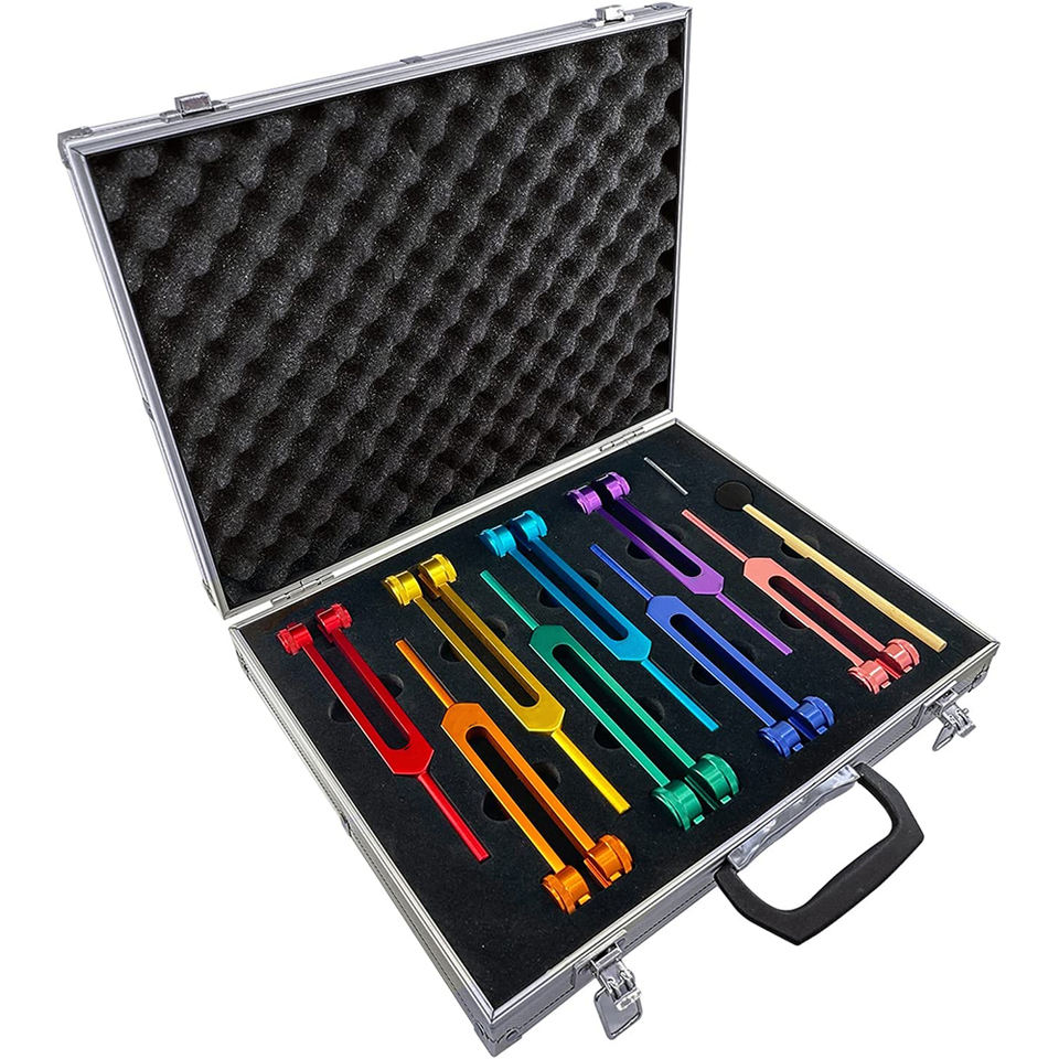 ชุดส้อมปรับจูนจักระ7จักระและ1โซลูชันส้อมคอสเพลย์อ็อกเทฟอลูมิเนียมอัลลอยเครื่องมือรักษาเสียง