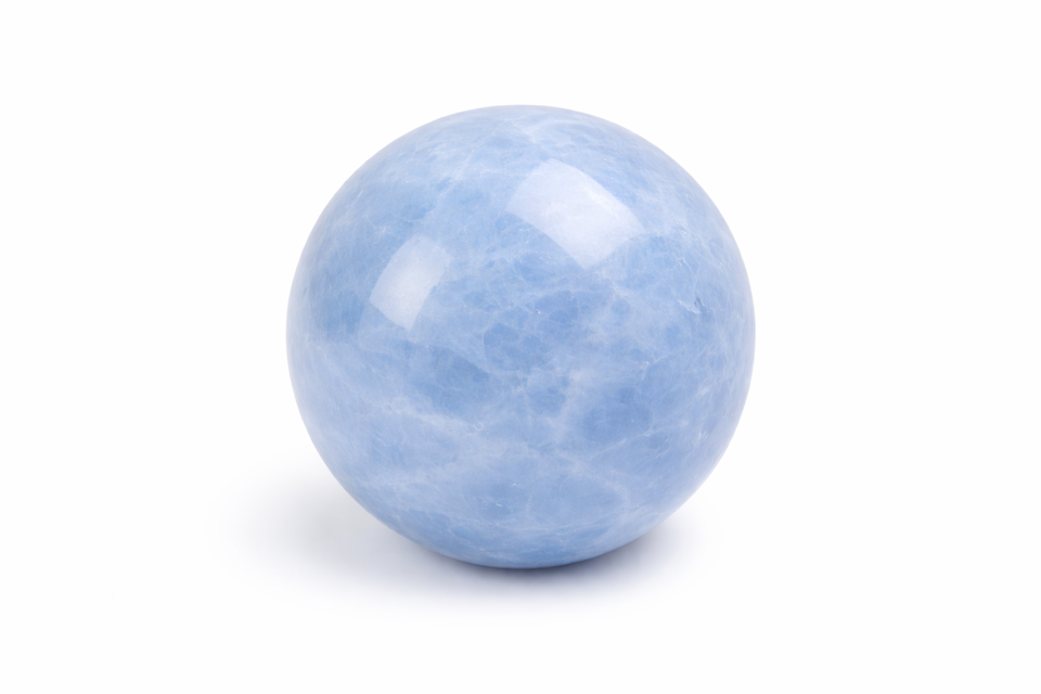 ลูกบอลคริสตัลแคลไซต์สีน้ำเงินธรรมชาติ ชักราลูเม่ ขัดเงาด้วยมือ สำหรับการทำสมาธิ เรกิ พลังงานจักระ และตกแต่ง