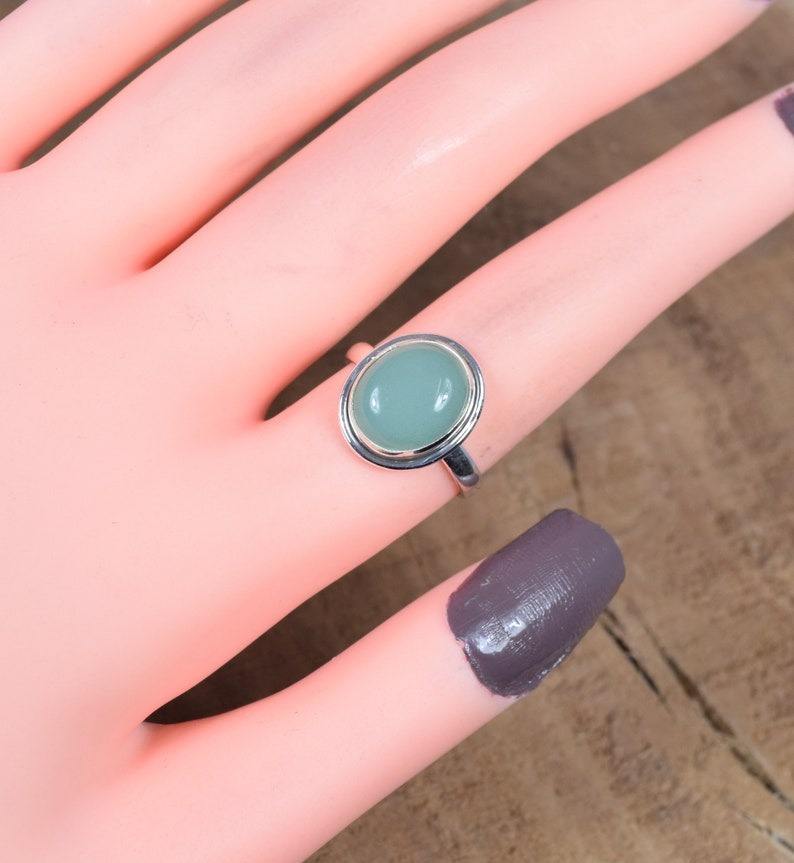 แหวนพลอยคาลซิโดนีรูปวงรีเงินสเตอร์ลิง925เดือนมีนาคมพลอยทำด้วยมือเครื่องประดับของขวัญสำหรับคริสต์มาส