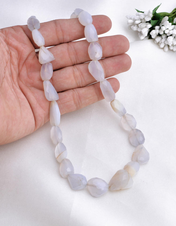 ลูกปัดหินชาลซิโดนีเจียระไนทรงกลม l 18 นิ้ว ลูกปัดหินชาลซิโดนีเจียระไนทรงกลมธรรมชาติสำหรับทำเครื่องประดับอัญมณีชั้นดี