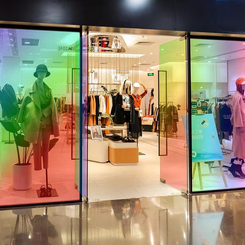 ฟิล์มติดกระจกเปลี่ยนสีรุ้ง วัสดุ PET ป้องกันรอยขีดข่วน ฟิล์มไดโครอิก ติดตั้งง่าย ป้องกันรังสียูวี ตกแต่งสวยงาม ฟรี