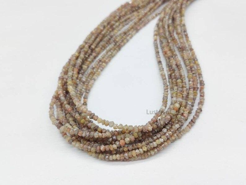 ลูกปัดเพชรแชมเปญ100% ลูกปัดเพชรหยาบแบบไม่เจียระไนจากธรรมชาติเครื่องประดับทำเพชรยาว16นิ้วลูกปัดไม่เจียระไนขนาด2-3มม.