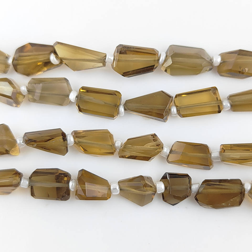 ลูกปัดควอตซ์แชมเปญทรงนักเก็ตขนาด 10-12 มม. ลูกปัดทรงนักเก็ตเจียระไน ร้อยเป็นเส้น ทำด้วยมือ สำหรับทำเครื่องประดับ จำนวน 18-20 เม็ดต่อเส้นยาว 8 นิ้ว