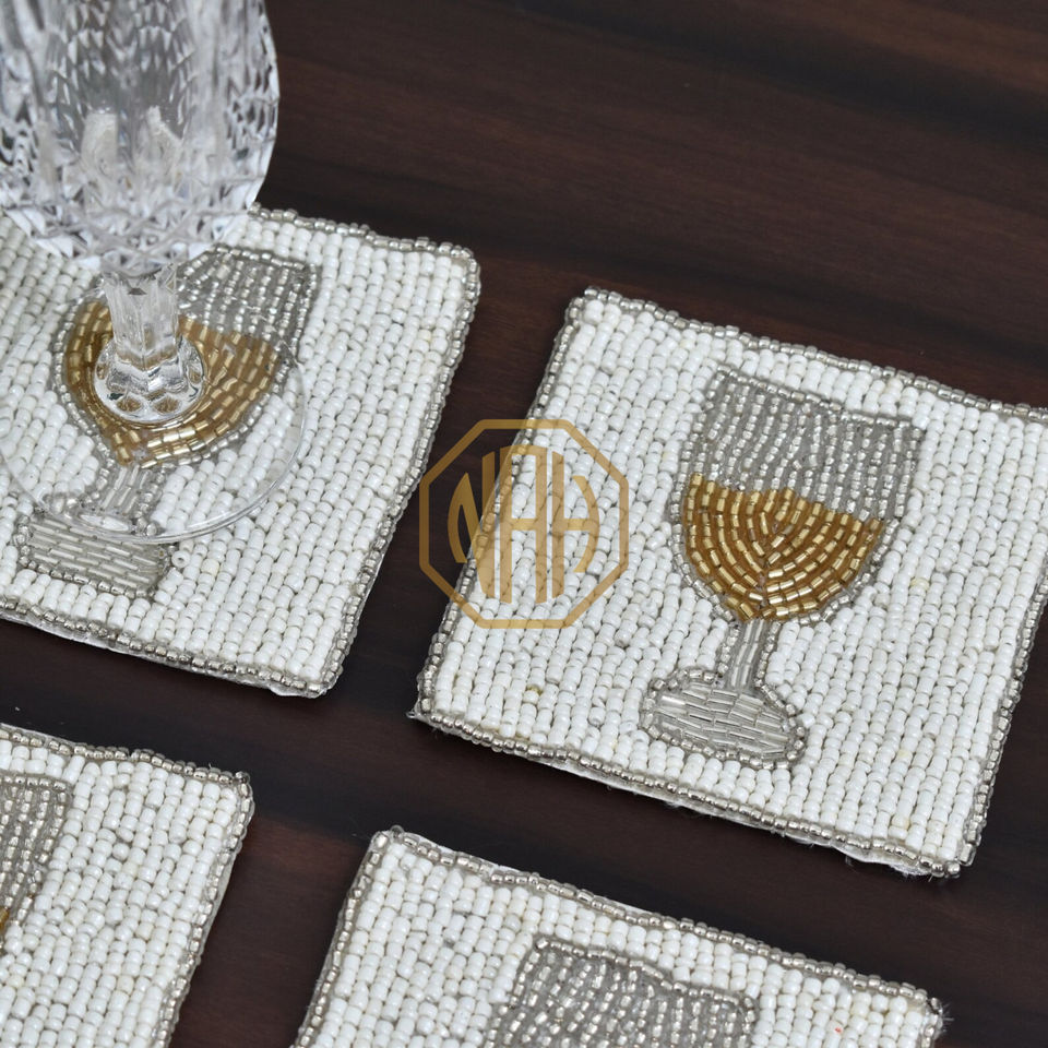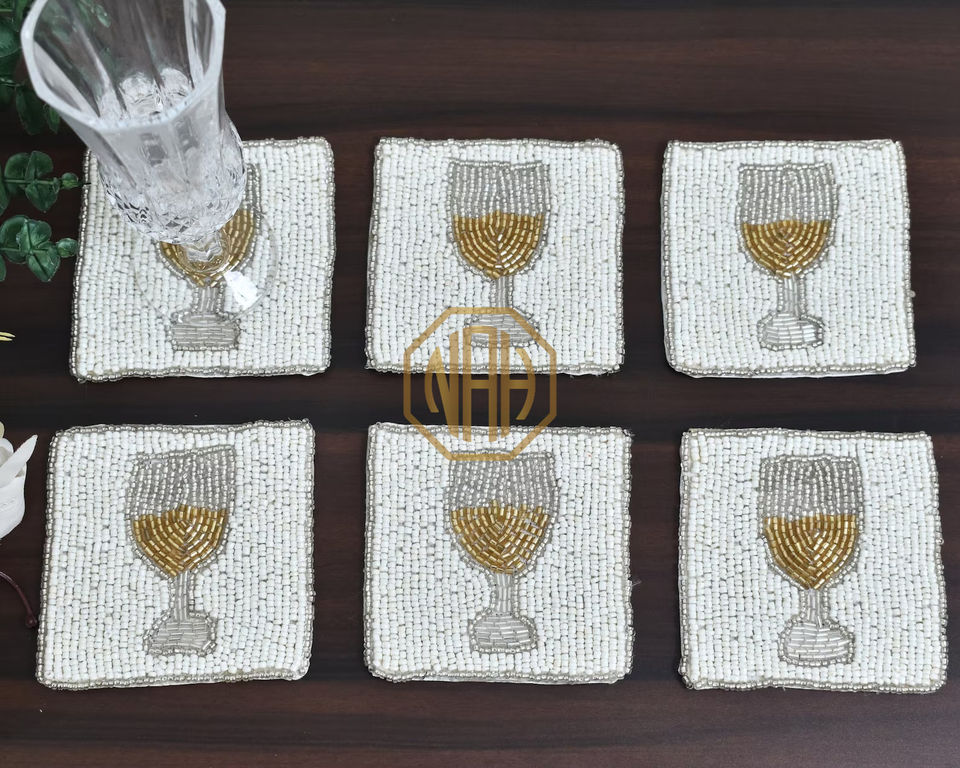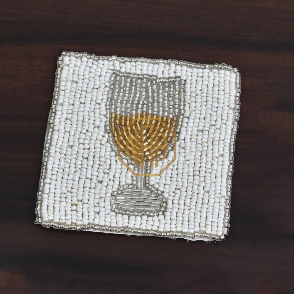 ที่รองแก้วลูกปัดลายแชมเปญแผ่นรองแก้วลูกปัดสำหรับตกแต่งห้องครัวโต๊ะรับประทานอาหารที่วางแก้วกาแฟจำนวนมากขายส่ง