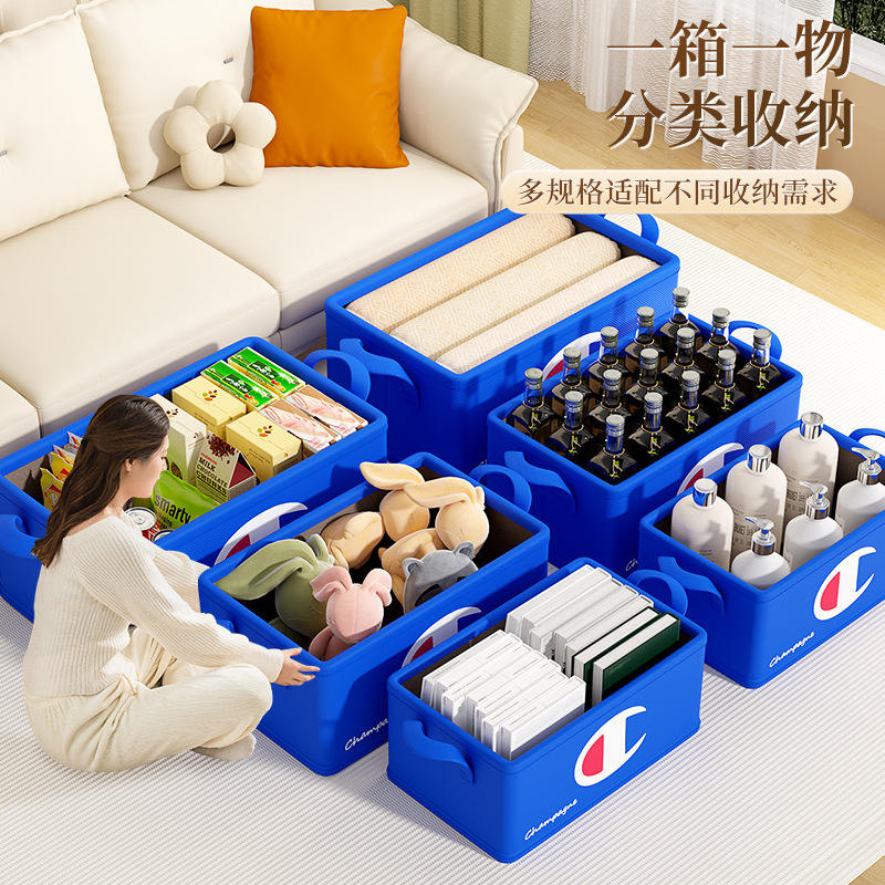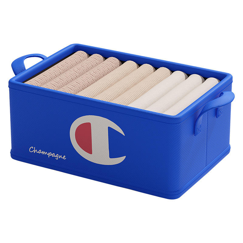 กล่องเก็บเสื้อผ้า Champion ทรงสี่เหลี่ยม ลายพิมพ์สีน้ำเงิน แบบพับได้ สำหรับจัดเก็บเสื้อผ้าและกางเกงในตู้เสื้อผ้า