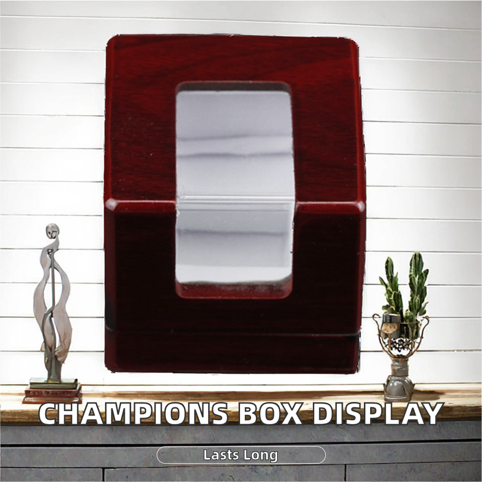 กล่องโชว์แหวนไม้ทำมือแบบตั้งพื้น Champions พร้อมหน้าต่างอะคริลิกใส สำหรับฮอกกี้ ฟุตบอล บาสเกตบอล เบสบอล