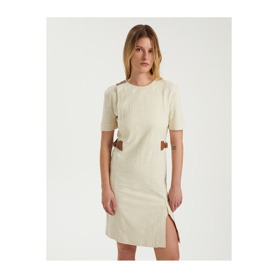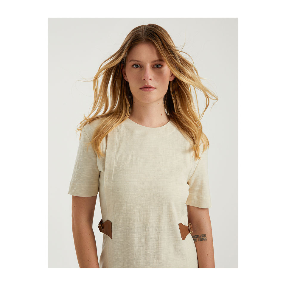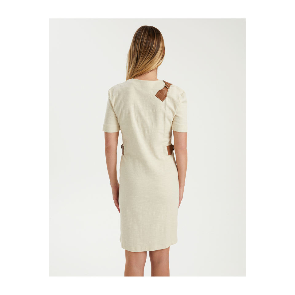 ชุดเดรสแขนสั้นลำลองชาแนลวิสคอนพร้อมหัวเข็มขัดเมตาประดับด้วยหนัง-สีสันสดใสหรูหราและทันสมัย
