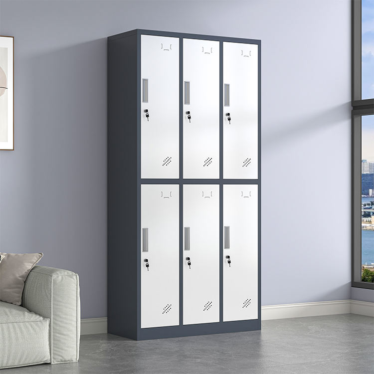 ล็อกกุญแจตู้เสื้อผ้า6ประตูตู้เหล็กสำหรับยิมล็อกเกอร์โลหะ
