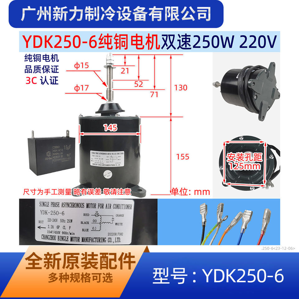 มอเตอร์ฉางโจว รุ่น YDK-250-6 220-240V มอเตอร์แบบอะซิงโครนัสเฟสเดียว สำหรับเปลี่ยนพัดลมภายนอกเครื่องปรับอากาศ
