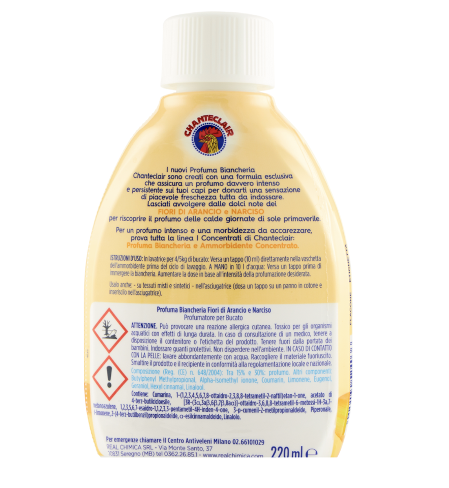 Chanteclair 220มล. กลิ่นเสื้อผ้าสีส้มและกลิ่นนาร์ซิสซัสน้ำหอมเครื่องล้างน้ำหอมผลิตภัณฑ์ทำความสะอาด