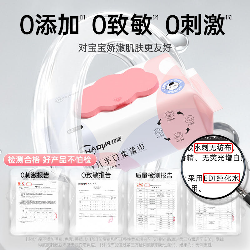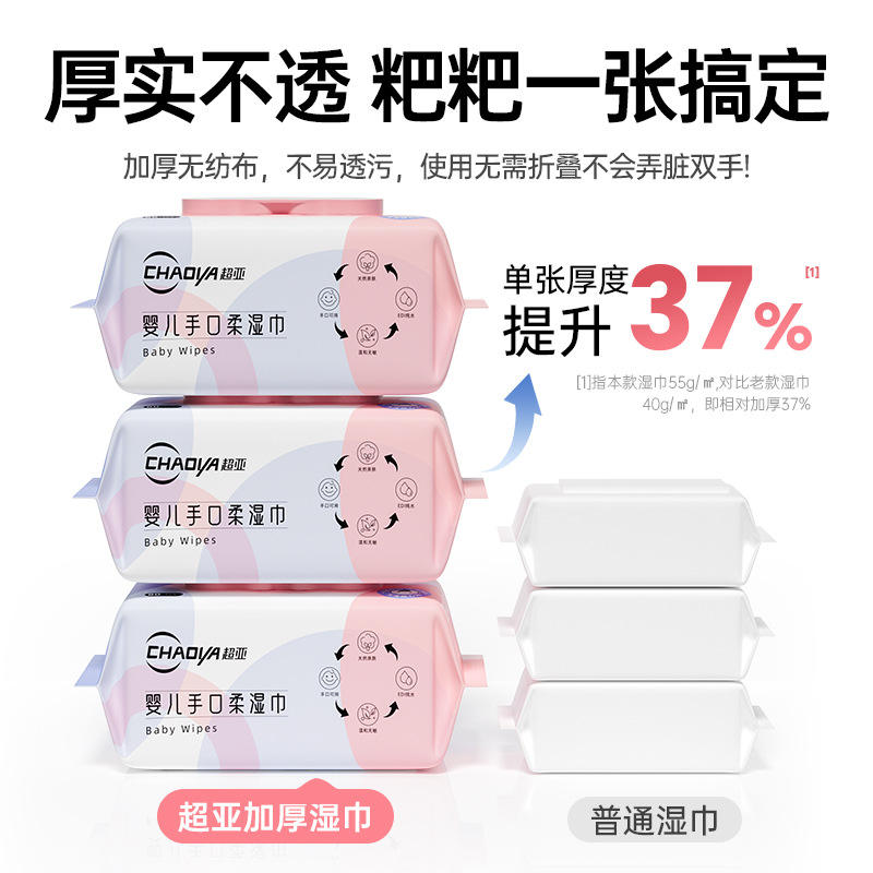 เชาว์หย่า ผ้าเช็ดทำความสะอาดเด็ก 80 แผ่น หนาพิเศษ สำหรับเช็ดมือ ปาก และทำความสะอาดบริเวณก้น