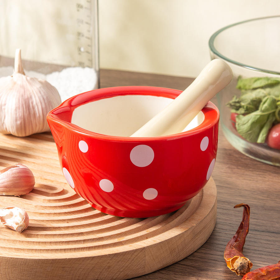 โถบดเซรามิกเฉาโจว สีแดง รูปทรงน้ำเต้า ปลอดสาร BPA สำหรับอาหารเด็ก พร้อมครก 0-12 เดือน