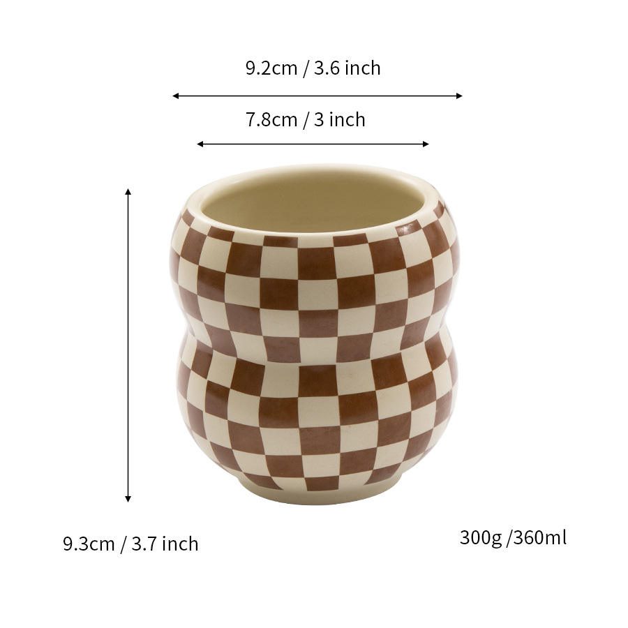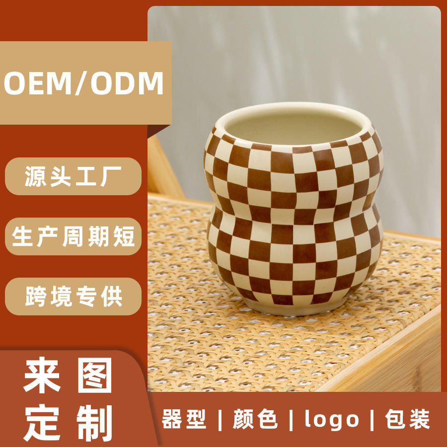 แก้วเซรามิกเฉาโจวสีขาวลายตารางหมากรุก ไม่มีหูจับ ทนความร้อนสูง แก้วเดี่ยว สำหรับแจกเป็นของขวัญ ปรับแต่งได้