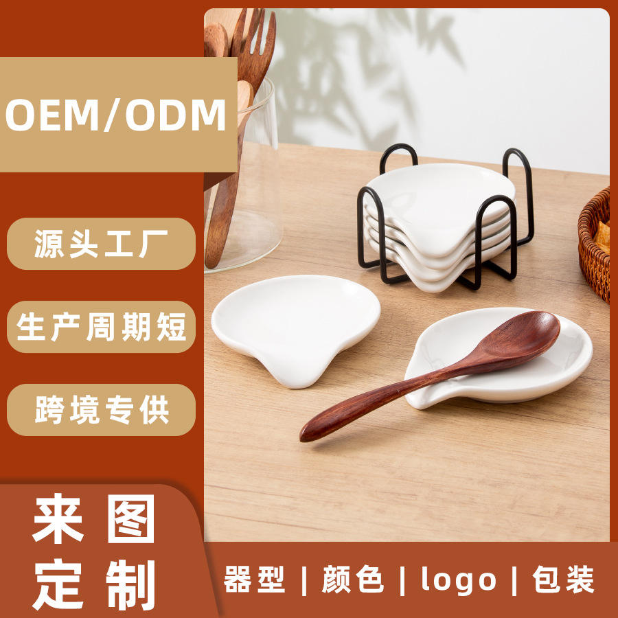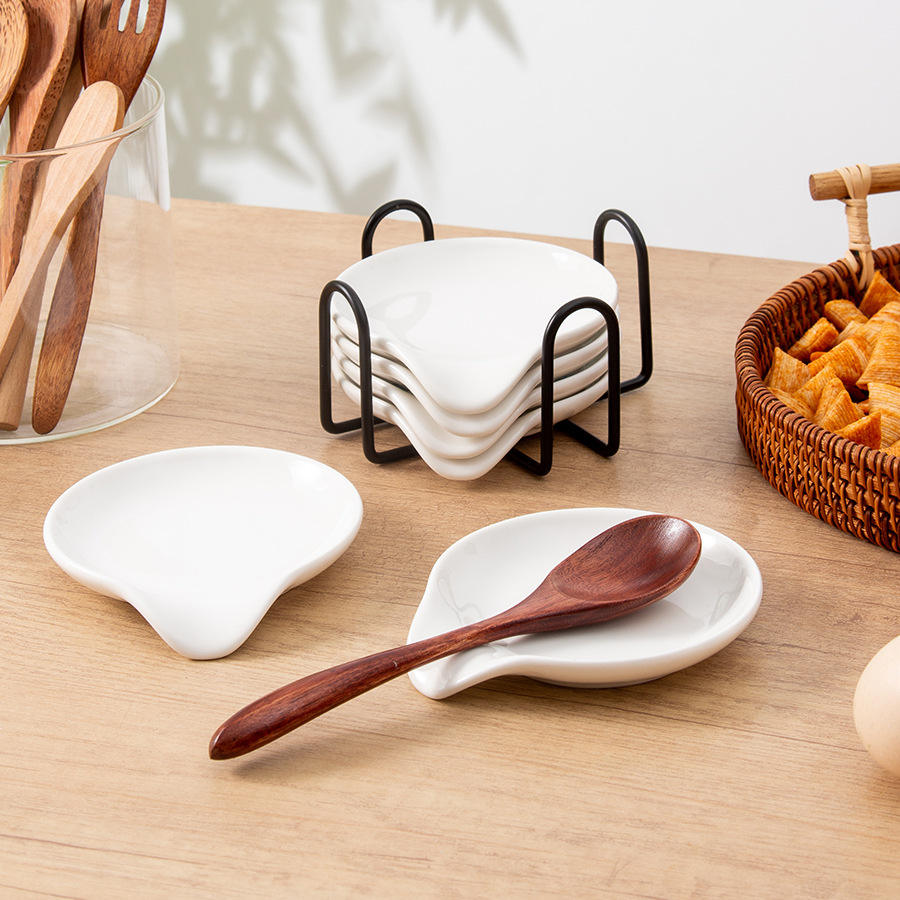 ชุดที่วางช้อนเซรามิกเฉาโจว โครงเหล็กสีขาว ที่วางอุปกรณ์ครัว ชั้นวางจาน สำหรับทำอาหารและเสิร์ฟ 6 ชิ้น มีสินค้าพร้อมส่ง