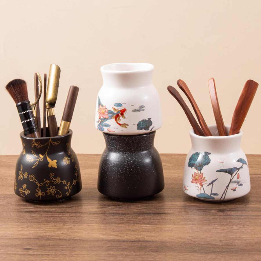 Chaozhou Porcelain Matcha Tools Set Six Essential Tea Utensils Durable Ceramic Tea Ceremony Accessories White And Black