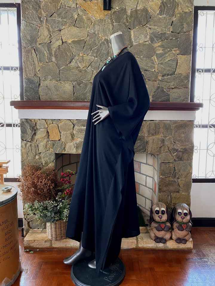 Charcoal Black Hand Dyed Rayon Caftan Dress Plus Size Loose Fit Boho Lounge Wear For Women