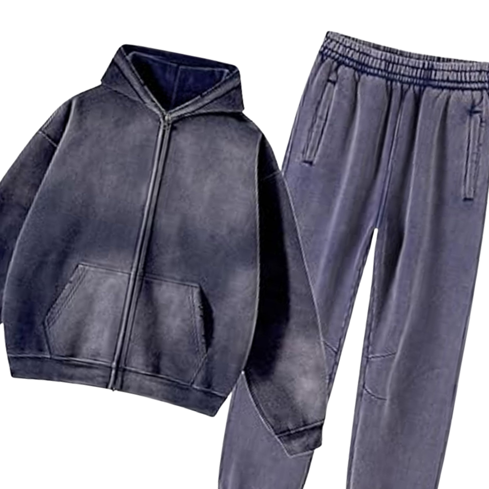 ชุดเซ็ตเสื้อฮู้ดซิปสีเทาชาร์โคลฟอกสีแบบวินเทจ กางเกงจ็อกเกอร์ ผ้าฟลีซ ทรงโอเวอร์ไซส์ สไตล์สตรีทแวร์ สำหรับฤดูหนาว